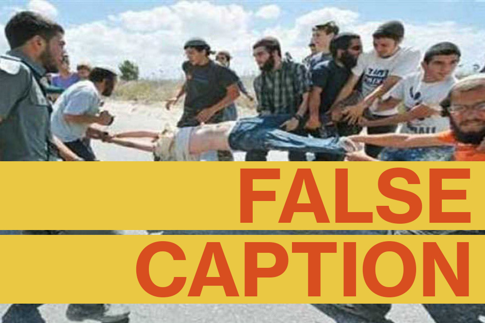 A reverse image search reveals that the photo is almost 15 years old, and the person being pulled at is an Israeli settler, not a Palestinian child.
